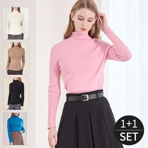 [로코엘라] 이츠 플레인 소프트 여성 터틀넥 데일리 풀오버 1+1