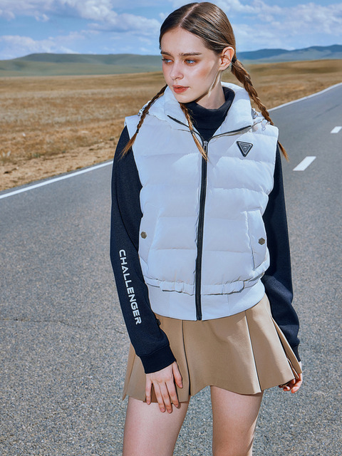 [챌린저] 여성 파우터리광택 구스다운 후디 베스트 샌드
