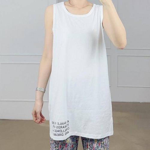 [셀러허브_여성트랜드패션]여성큰옷 빅사이즈 끈 롱 나시 망고 골지 면 민소매 루즈티셔츠 봄 여름 중년 ..