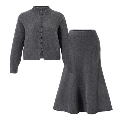 [GGPX]반하이넥 버튼 가디건 니트 롱 스커트 셋업 (GPDOW015D)