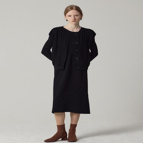 [옷자락] 여자 레이어드 양트임 박시 브이넥 니트조끼 롱원피스