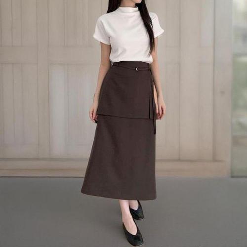 [신상오픈런]여성 롱 스커트 클래식 벨트 A라인 단색 랩 스타일