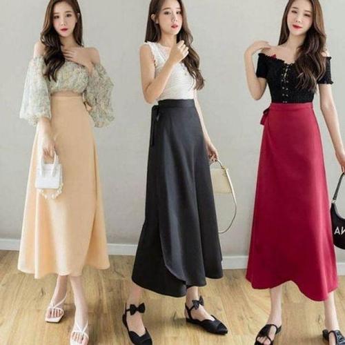 [에이치플러스몰]A라인 베이직 여자 랩 스커트 올데이 여름 롱 치마 캐