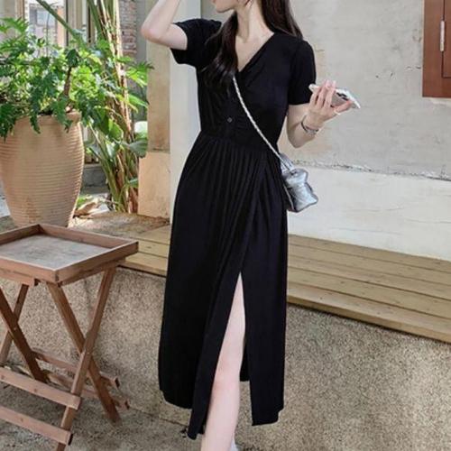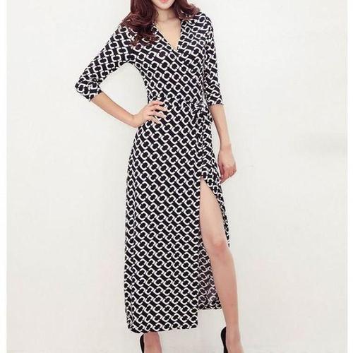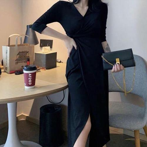 [에이치플러스몰]랩 스타일 여성 러블리 롱스커트 브이넥 롱원피스