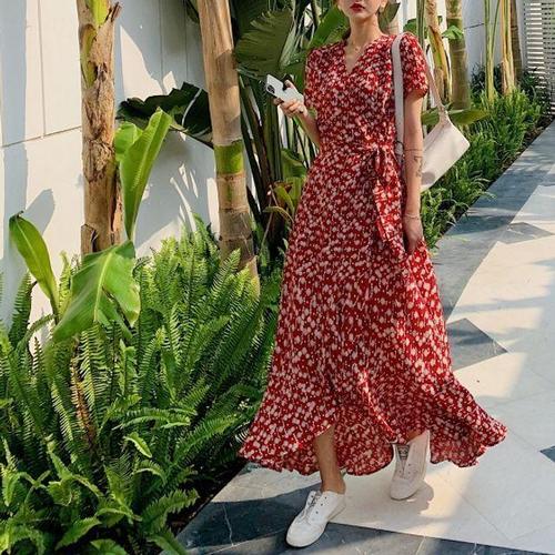 휴양지 여름 원피스 롱 반팔 쉬폰 나시 플라워 랩 바캉스룩 허니문