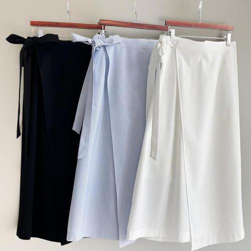 [신상오픈런]여성 해변 패션 스트라이프 리본 A라인 랩 롱스커트 (38565015)