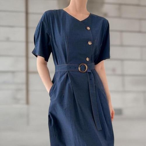 [바이어스]랩 리본 플레어 슬림핏 브이넥 롱 원피스 (9856723A)