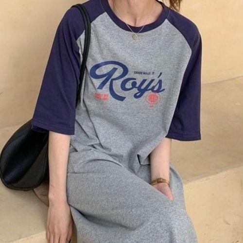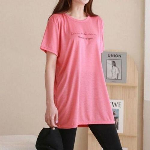 [에이치플러스몰]썸머 여자 박스 반팔 롱 티셔츠 여름 캐주얼 데일리