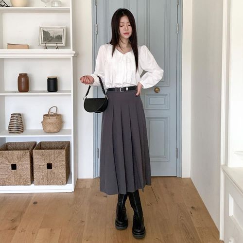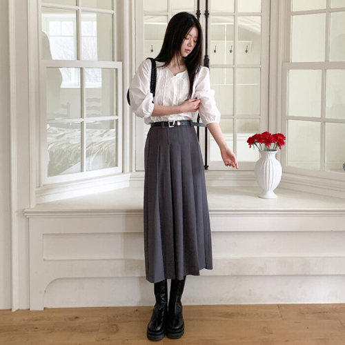 옷자락 / 여자 데일리 오피스룩 플리츠 벨트세트 롱스커트