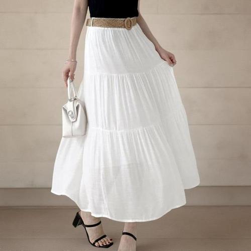[신상오픈런]여성 여름 바캉스 셔링 캉캉 벨트 세트 롱스커트 (38631789)