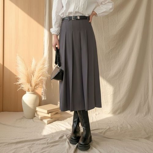 [신상오픈런]여성 클래식 핀턱 플레어 롱 스커트 벨트 세트 (41907272)