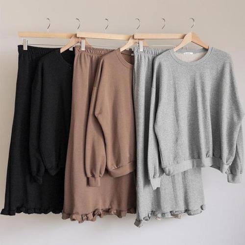 [신상오픈런]여성 빅사이즈 프릴 롱스커트와 오버핏 가을 맨투맨 세트 (41340931)