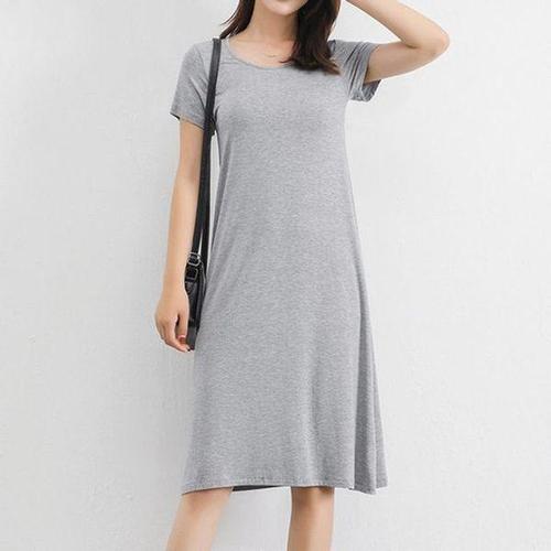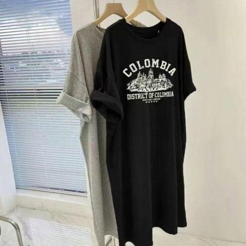 [에이치플러스몰]와이드핏 레터링 반소매 맥시원피스룩 데일리 슬립웨어