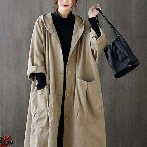 Izeriel 추동 포인트 페이크 투피스 롱 야상 후드 스웨이드 루즈핏 트렌치코트 트렌디 후드티 메일라드 여성복