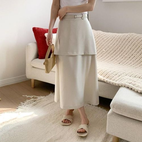 옷자락 / 여성 데일리 사무실룩 벨트 레이어드 롱치마