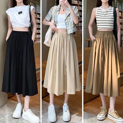 [에이치플러스몰]여성 쿨링 롱와이드 플레어 치마바지 밴딩 여름 치마 바지 스커트