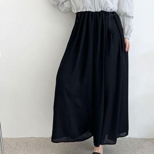 [에이치플러스몰]와이드핏 쉬폰 허리밴딩 롱 치마바지 찰랑 플레어팬츠