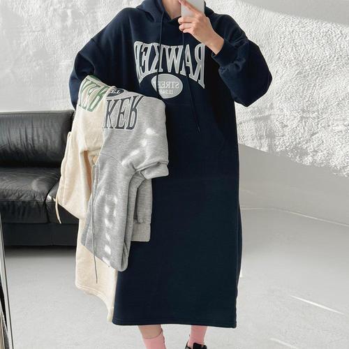 여자 휘뚜루 등원룩 기모후드 필기체 롱원피스
