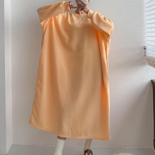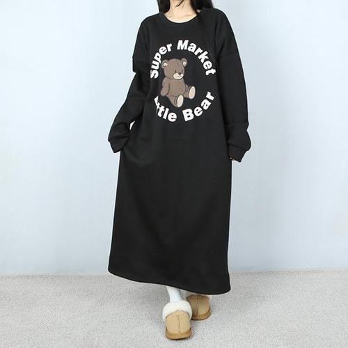 [파라노말샵](빅사이즈) 테디 라운드 긴팔 오버핏 기모 롱 원피스