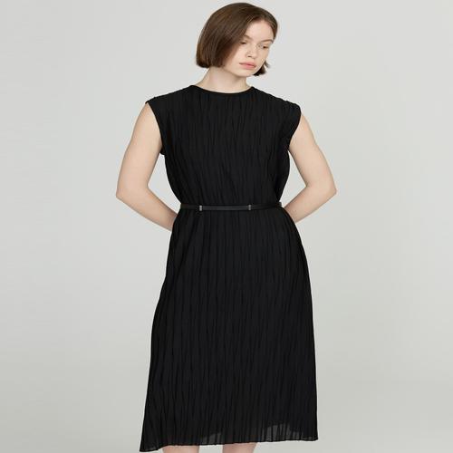 [D-PLEATS] 블랙 벨티드 민소매 플리츠 롱원피스 (DLDR5BP23BK)