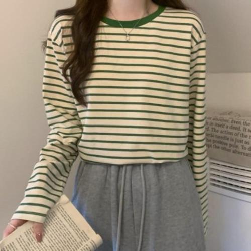[다잇템]여성 롱슬리브 단가라 빅사이즈 캐쥬얼 티셔츠