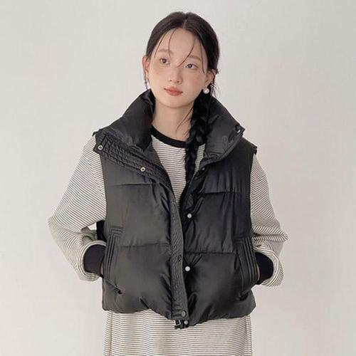 [이시안 착용] 웨이스트 테이프 장식 숏 구스점퍼