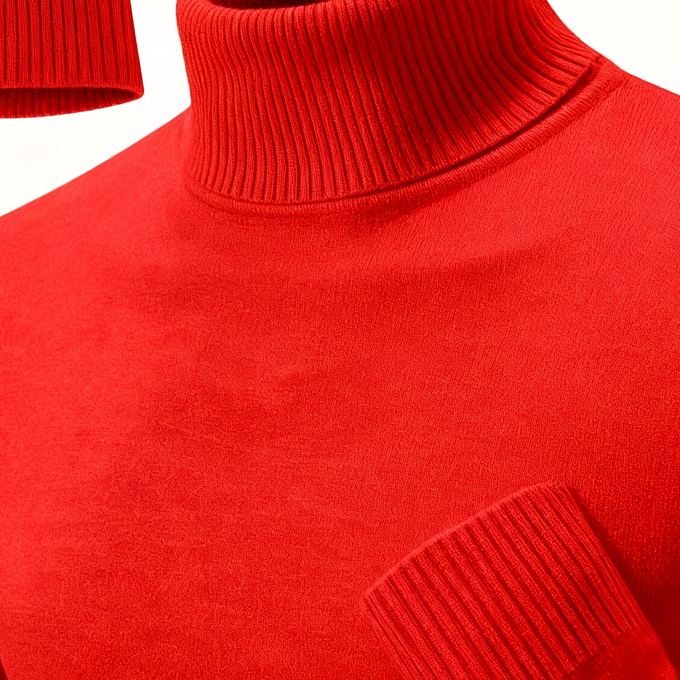 TEMU 남성용 캐주얼 풀오버 스웨터 (가을/겨울), 단색, 하이넥, 따뜻한 니트, 긴소매