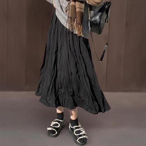 [신상오픈런]여성 플리츠 롱스커트 빅사이즈 뒷밴딩 가을 스판 핀턱 (42510208)