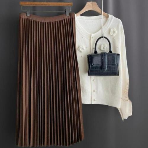 [신상오픈런]여성 가을 하객 패션 플리츠 A라인 니트 롱 스커트 (42510205)