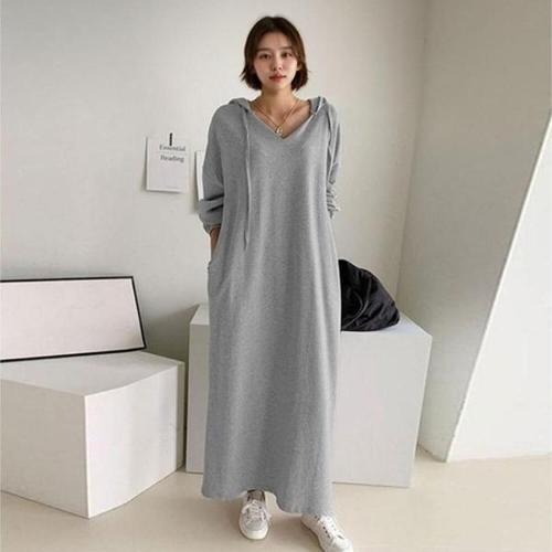 [엄지척]무지 후드 심플 롱원피스 캐쥬얼 여성 긴팔원피스_19802919_667501