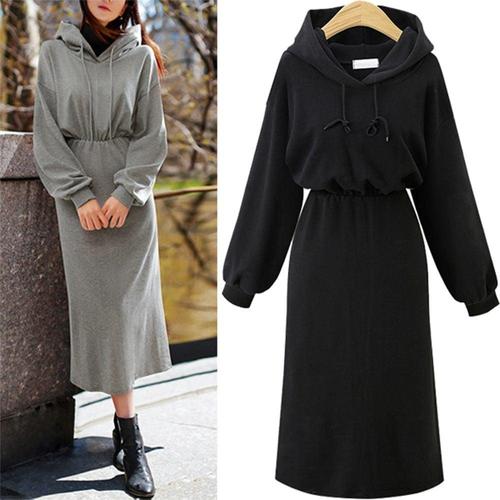 F30732 2컬러 맨투맨 허리 밴딩 후드 롱 원피스 WFL8DH8