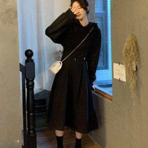 [신상오픈런]여성 가을 외출용 반오픈 후드 긴팔 롱드레스 (41503016)