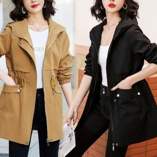 [에이치플러스몰]여자 야상점퍼 봄 가을 스트링 바람막이 후드집업 간절기아우터 자켓 미디움 롱 집업자..