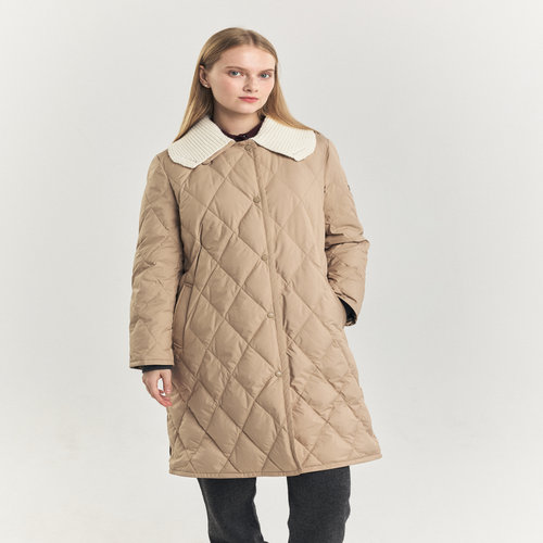 헤지스 여성 [구스다운] 베이지 다이아퀼팅 탈착 카라 롱 중량다운 점퍼 (HSJU4D908I2)