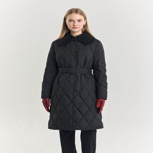 헤지스 여성 [구스다운] 블랙 다이아퀼팅 탈착 카라 롱 중량다운 점퍼 (HSJU4D908BK)