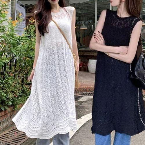 [에이치플러스몰]여름 인기 여자에니팅레이어드면롱나시