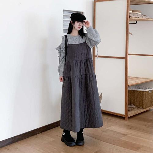 [다잇템]여성 퀼팅 에이라인 코르셋 캐미 롱 원피스