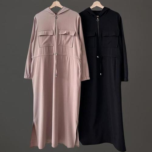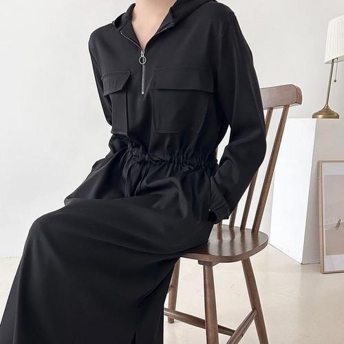 [셀럽하우스]앞지퍼 IMDJ9027 밴딩 2컬러 후드집업 롱 후드원피스 롱 집업