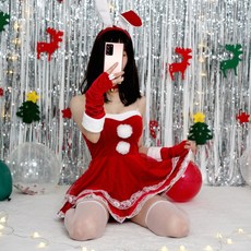 산타걸 코스프레 2SIZE 5종SET 성인 여자 산타복 산타 원피스 크리스마스 옷 섹시 토끼 바니 머리띠 오프숄더 코스튬 19