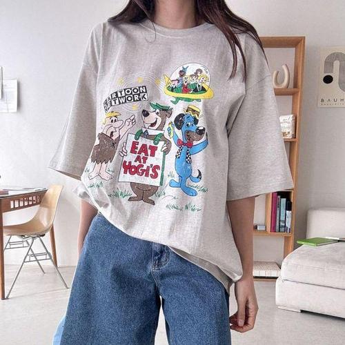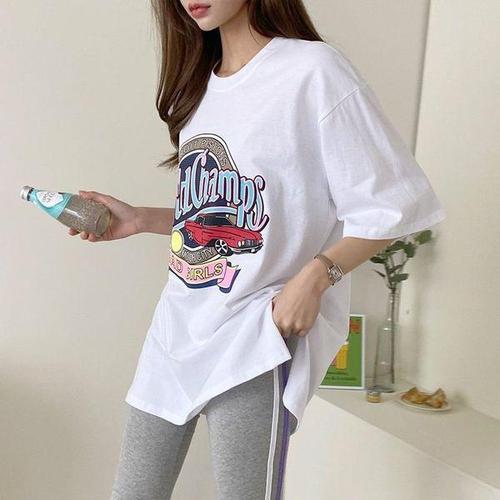 [에이치플러스몰]루즈핏 뱃걸 반팔 롱 티셔츠