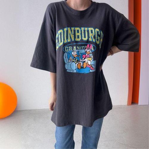 [에이치플러스몰]루즈핏 덕 반팔 롱 티셔츠