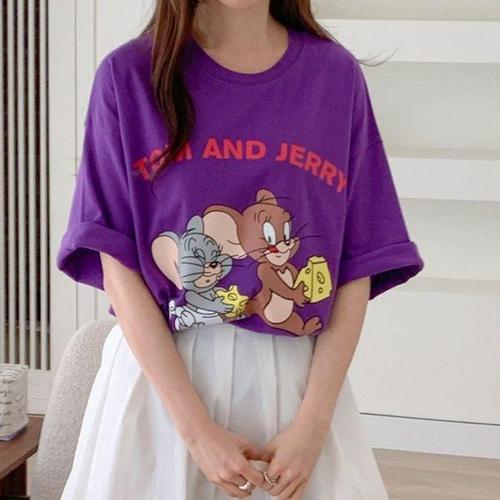 [에이치플러스몰]루즈핏 제리 반팔 롱 티셔츠
