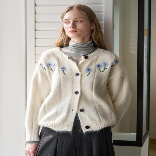 [르샵]라운드넥 눈꽃 자수 니트 가디건 (DP4CK028A)