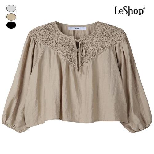 [르샵][르샵] 드롭 숄더 자수 반팔 타이넥 블라우스