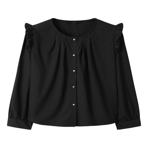 [르샵]프릴 진주 버튼 포인트 블라우스 (DP3BA035A)