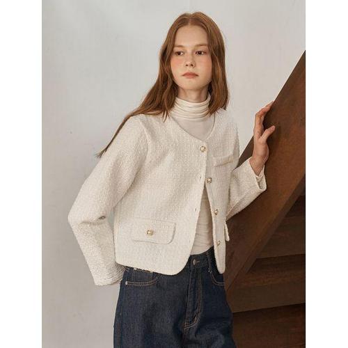 [르샵]노카라 골드 버튼 트위드 자켓 (DQ1JK006A)