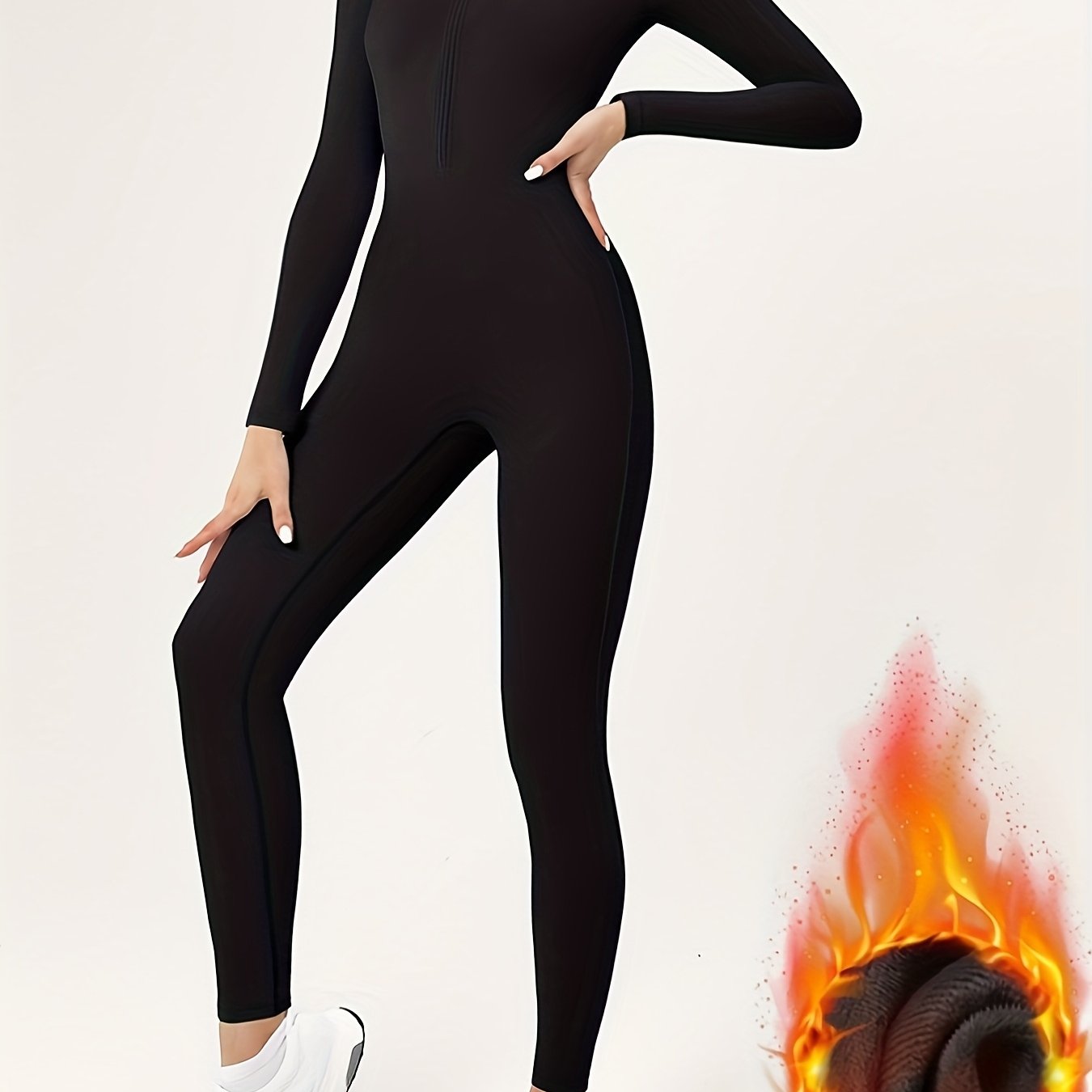TEMU 가을/겨울 점프수트, 타이트핏, 기모 안감 요가 점프수트, 아웃도어 따뜻한 점프수트, 러닝 피트니스 수트