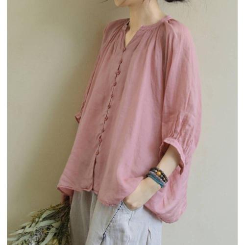 여성 봄여름 린넨 블라우스 루즈핏 라운드넥 7부소매 내추럴핏 데일리 캐주얼 상의