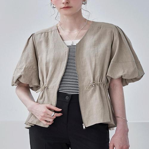 [삐까삐까]귀여운 카라넥 볼륨 반팔 집업 자켓 내추럴 린넨 여성 여름 숏 아우터