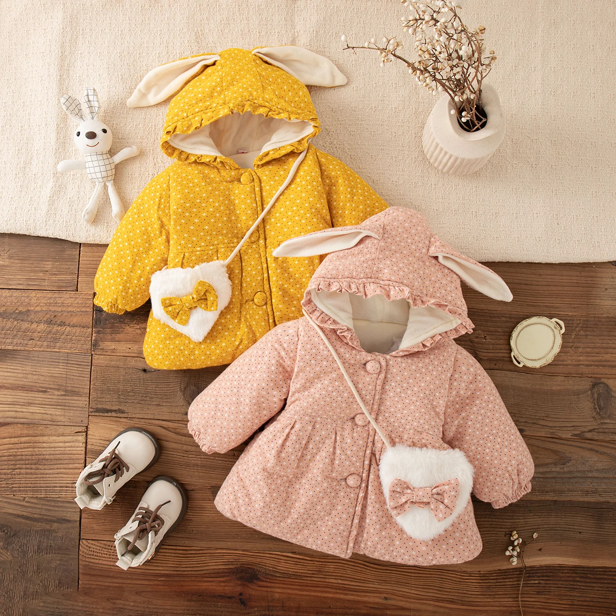 겨울 새로운 귀여운 후드 아기 소녀 재킷, 두껍고 따뜻한 아동복(9개월 -3세)